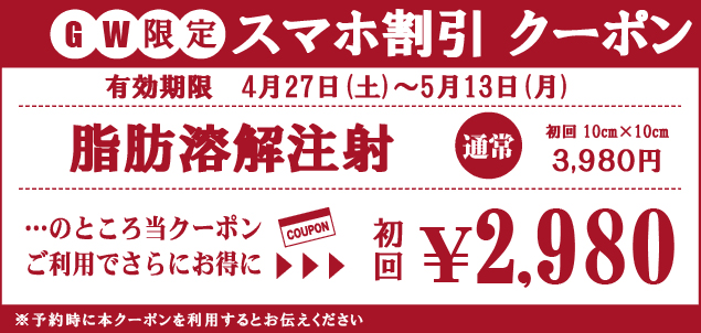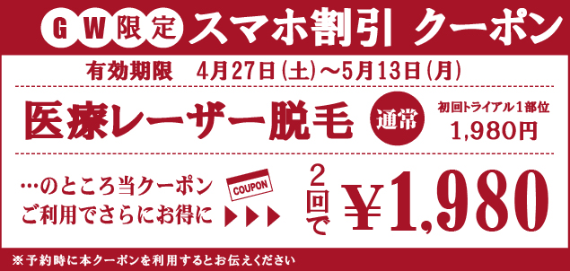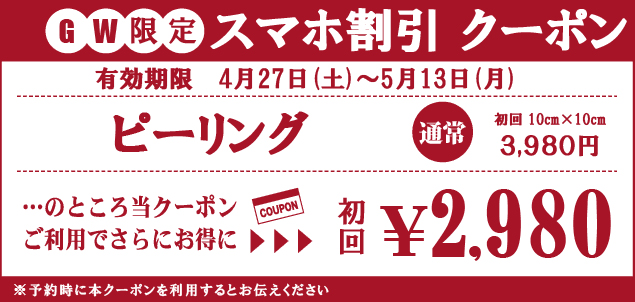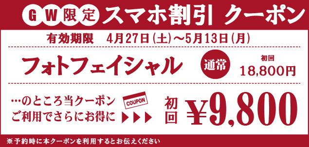 こちらはスマホ専用サイトをご覧の皆様だけへのお知らせです。キャンペーン価格がさらにお得になる期間限定のクーポンです。電話やウェブから予約受付をする際に本クーポンの利用をお伝えください。