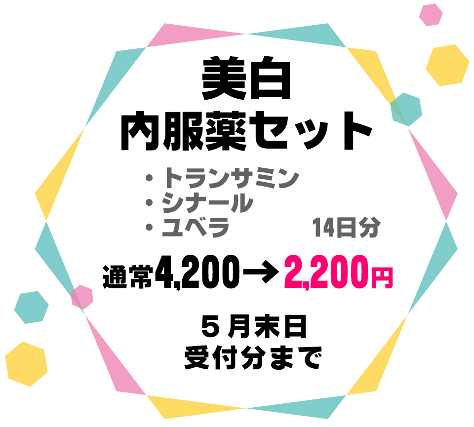 【スマホでお得】 人気の美肌美白MENUが今だけ特別価格 ❤ 内服薬セットが47%オフの2,200円!
